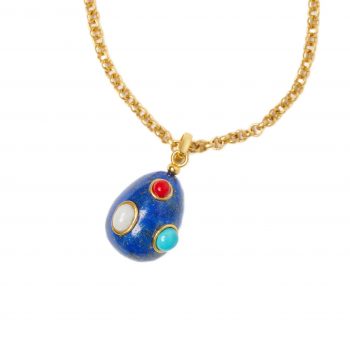 Lapis-Lazuli Egg with Turquoise, White Quartz and Ceramic Coral