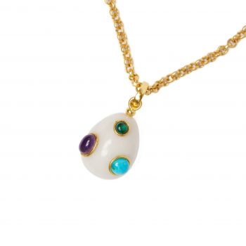 White Quartz Egg with Malachite, Turquoise and Amethyst