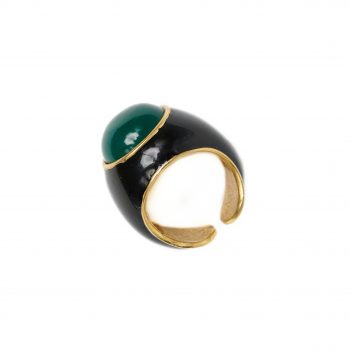 Cabochon Enamel: Green Onyx on Black Enamel ring