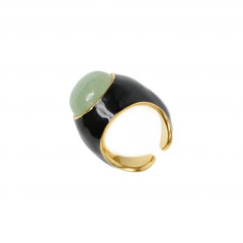 Cabochon Enamel: Green Aventurine on Black Enamel ring