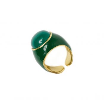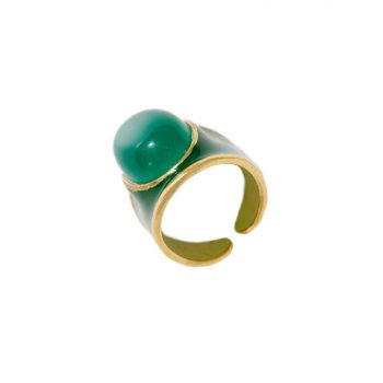 Cabochon Enamel: Green Onyx on Green Enamel ring