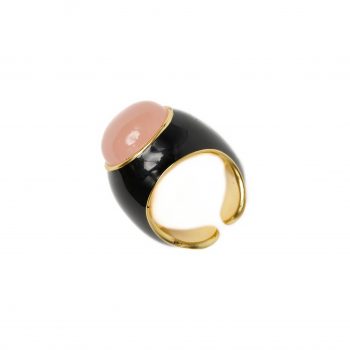 Cabochon Enamel: Pink Chalcedony on Black Enamel ring