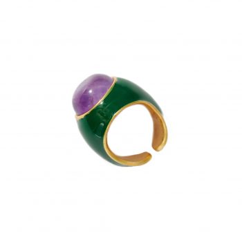 Cabochon Enamel: Amethyst on Green Enamel ring