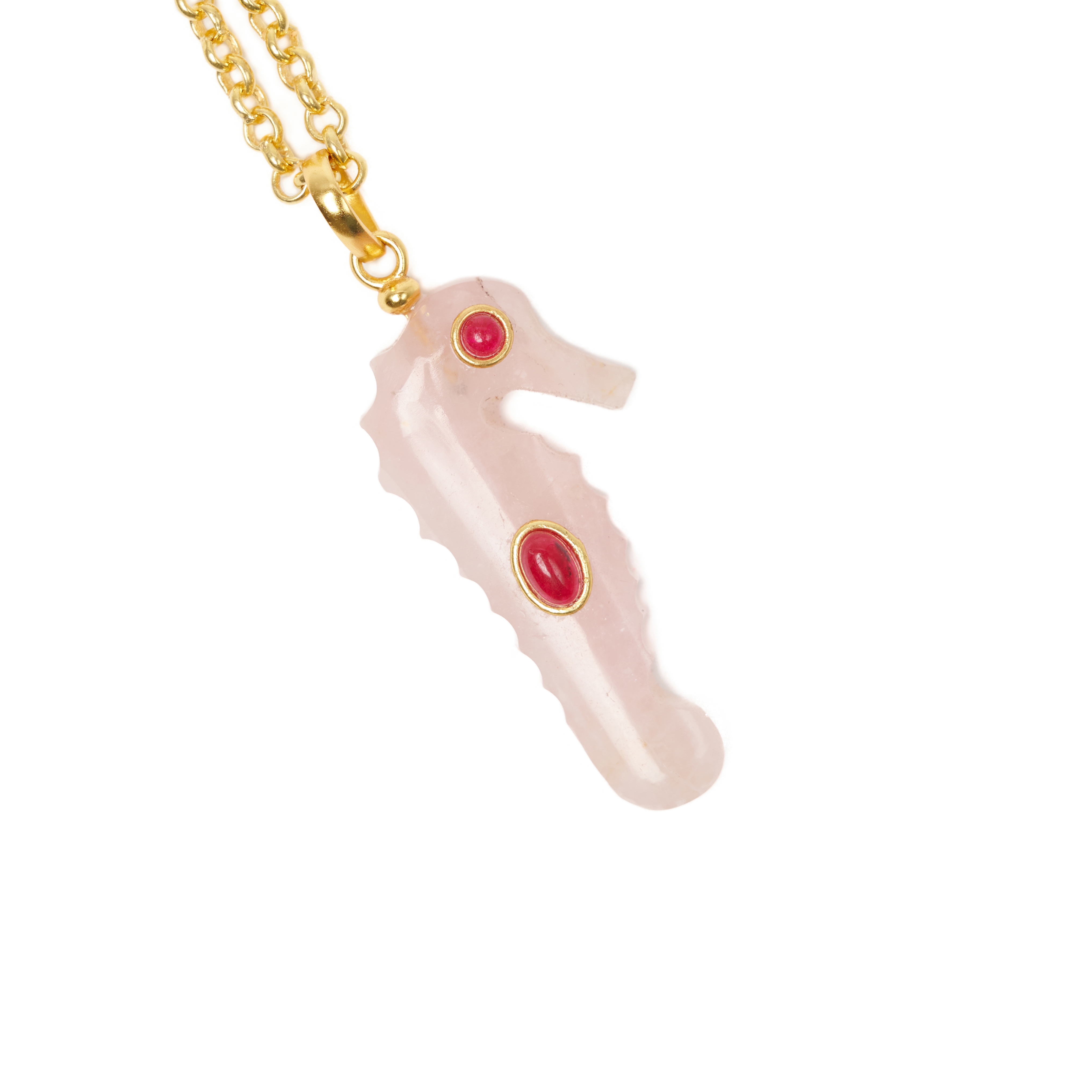 Rose Quartz with Pink Quartz Sea Horse Pendant with chain
