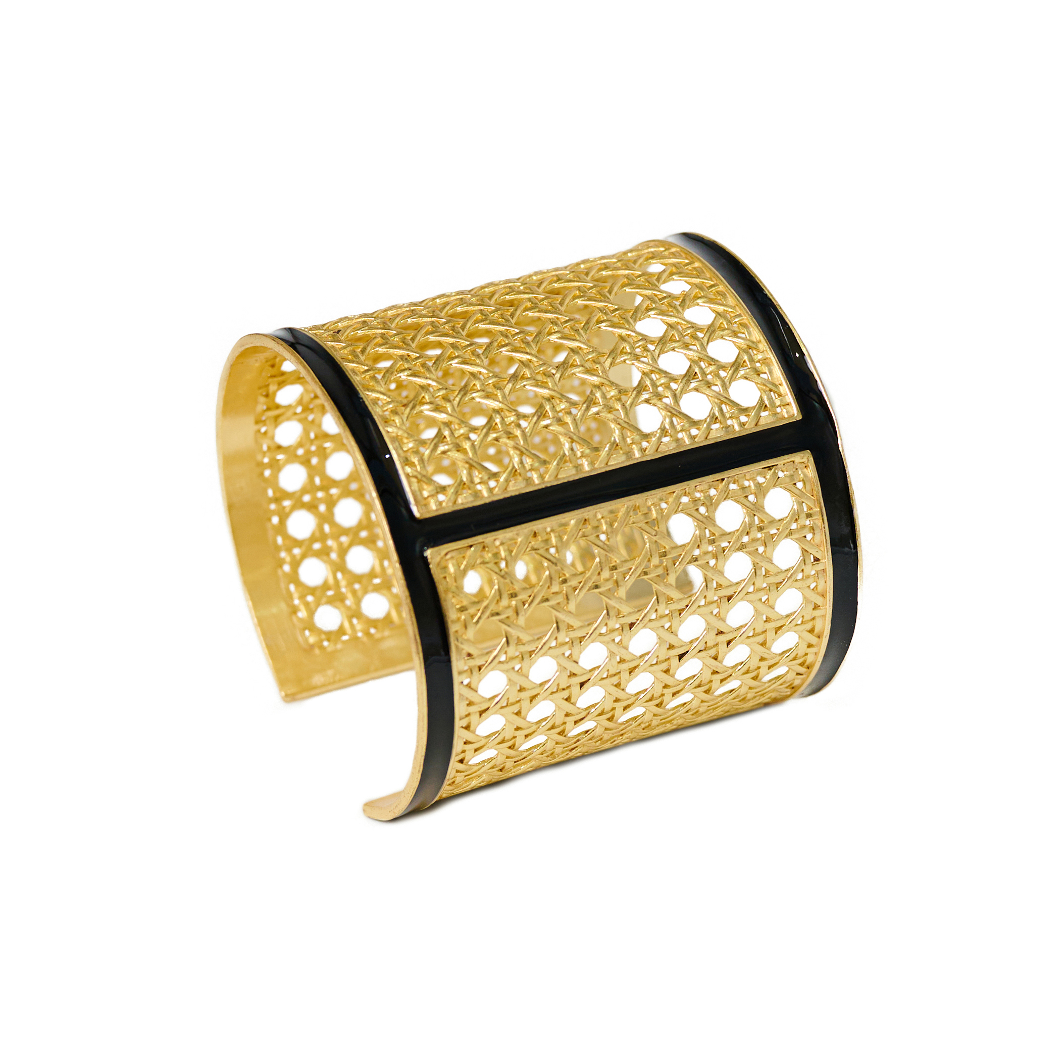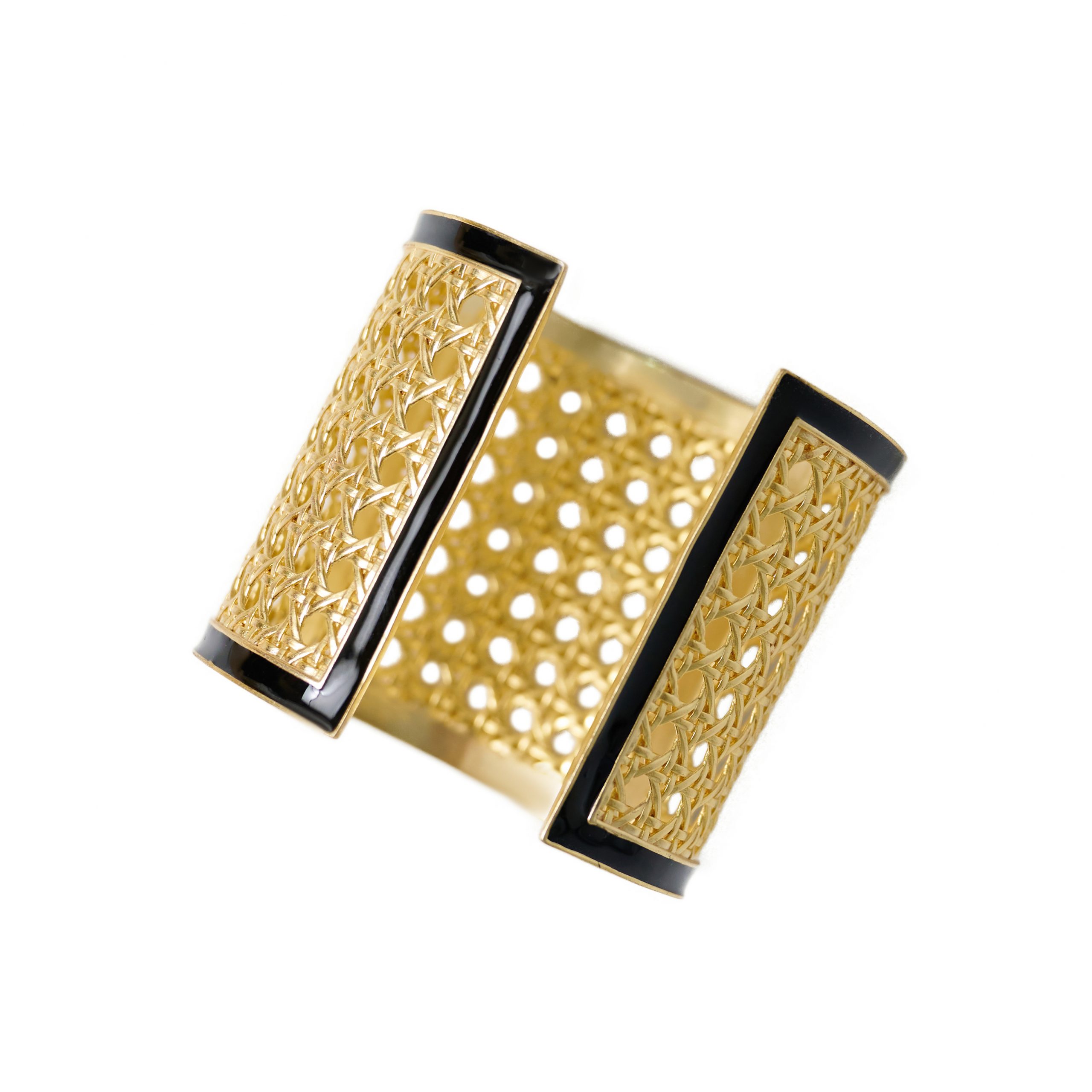 Structure on 24k gold layered brass classical caning, adorned with hand made black enamel.