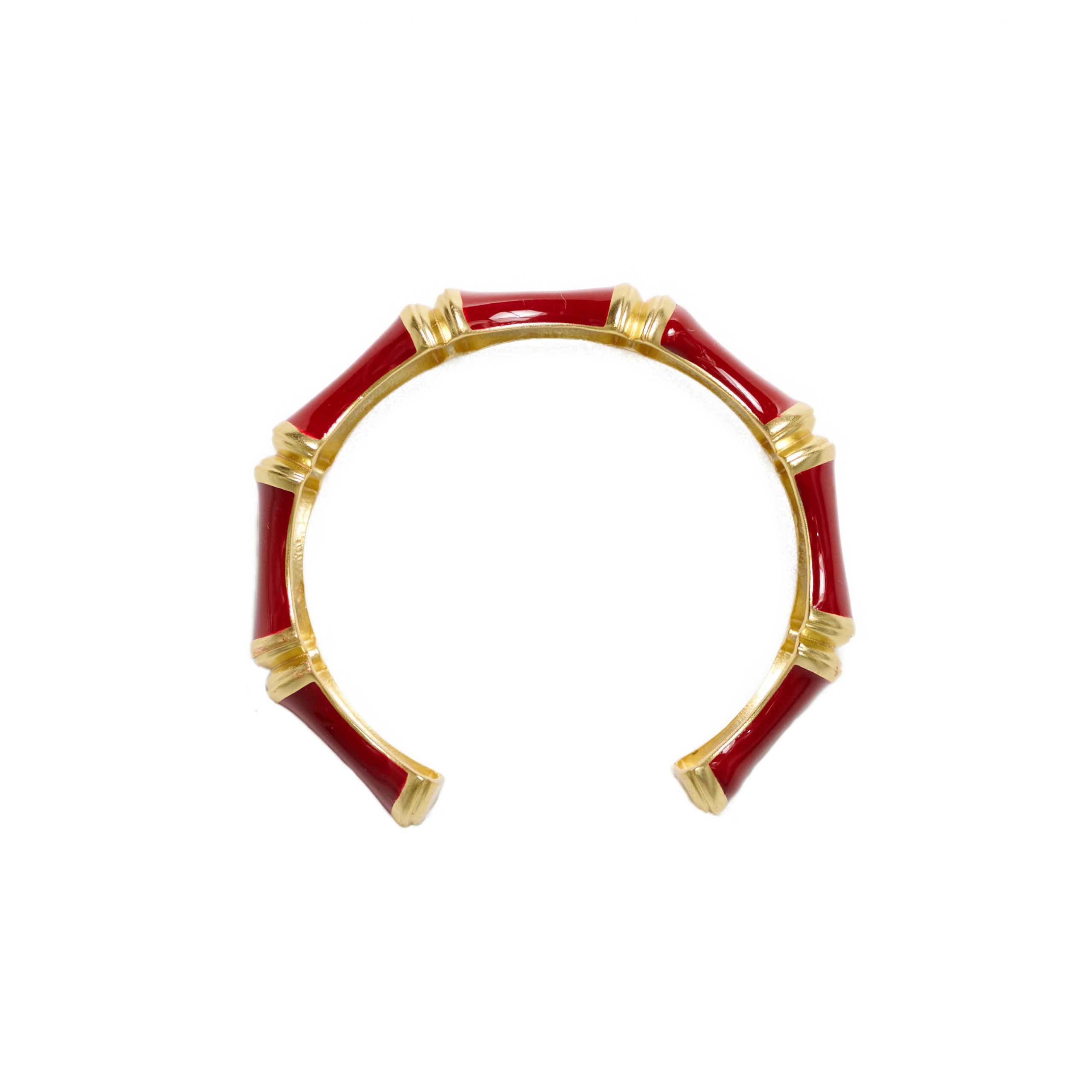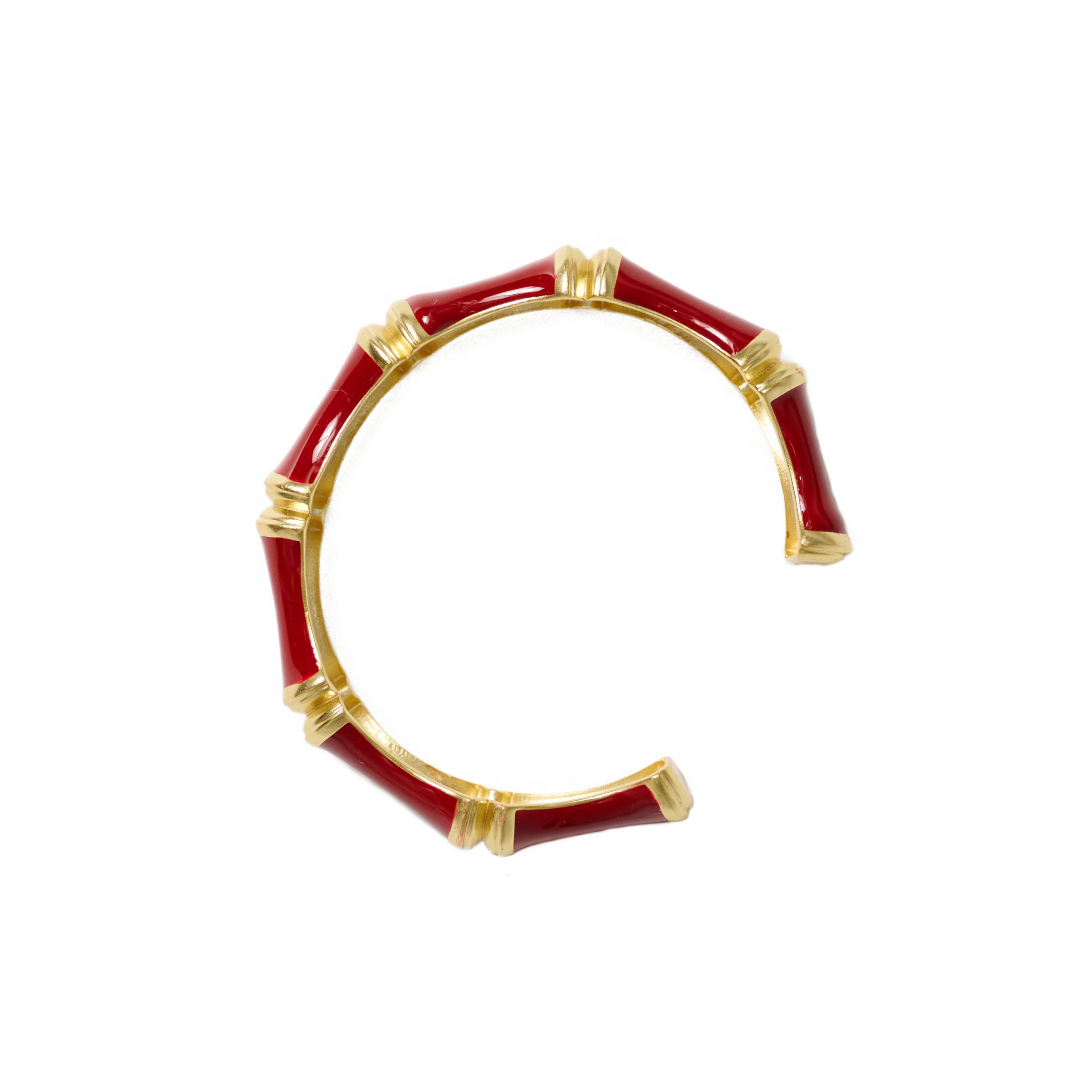 Bamboo design for a bracelet with hand made burgundy enamel over 24k gold layered brass.