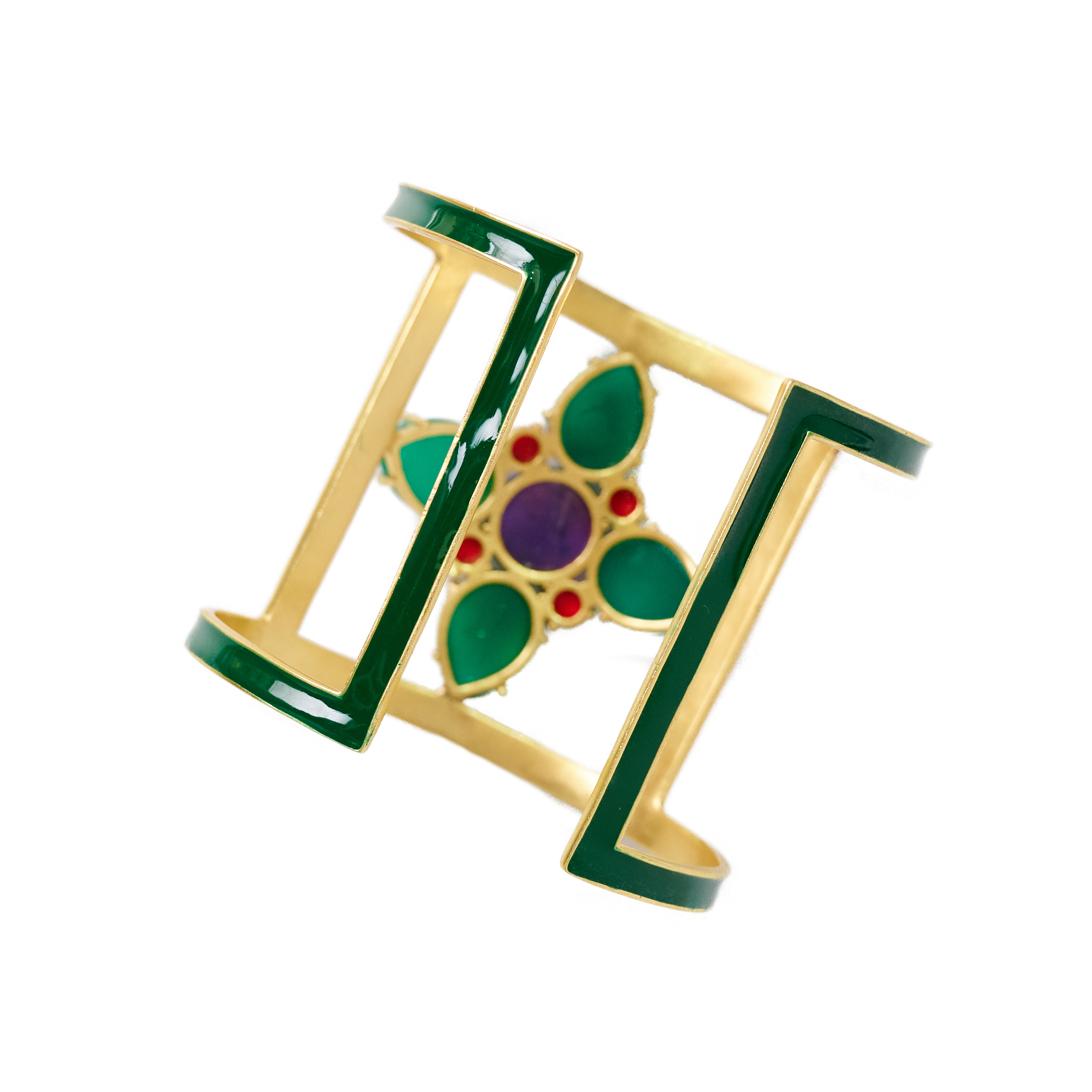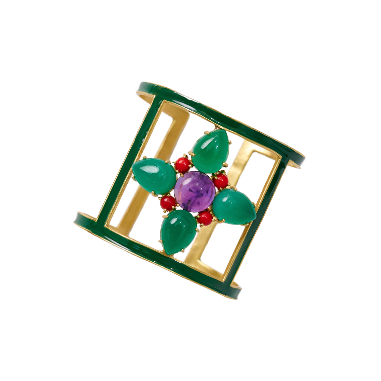 Flower Cuff with Green Onyx Petals and Amethyst Center