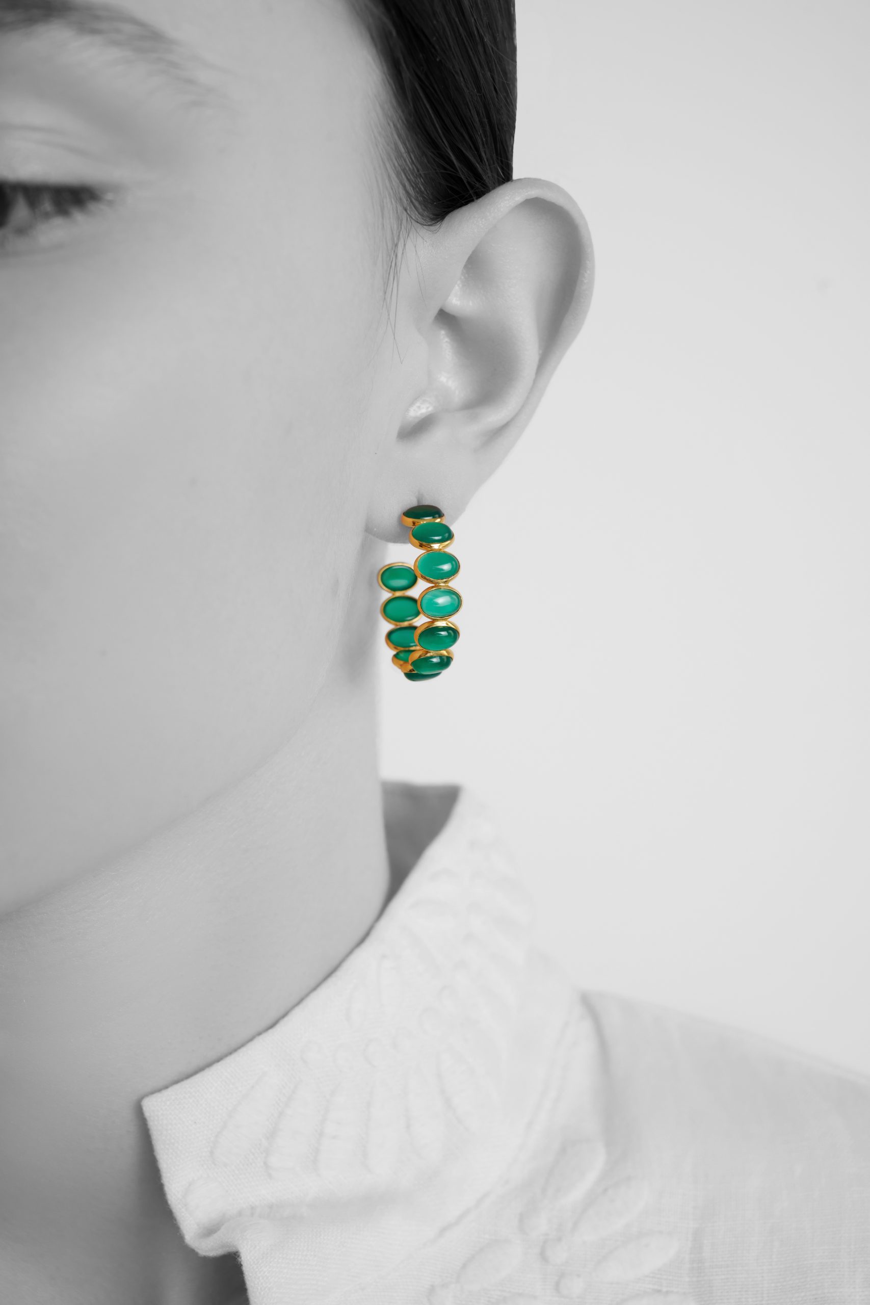 INFINITY CABOCHON HOOPS: Hand carved and polished 11 cabochon stones for each side, hand mounted one by one to create a hoop on 18k gold-layered brass. Passing closing.