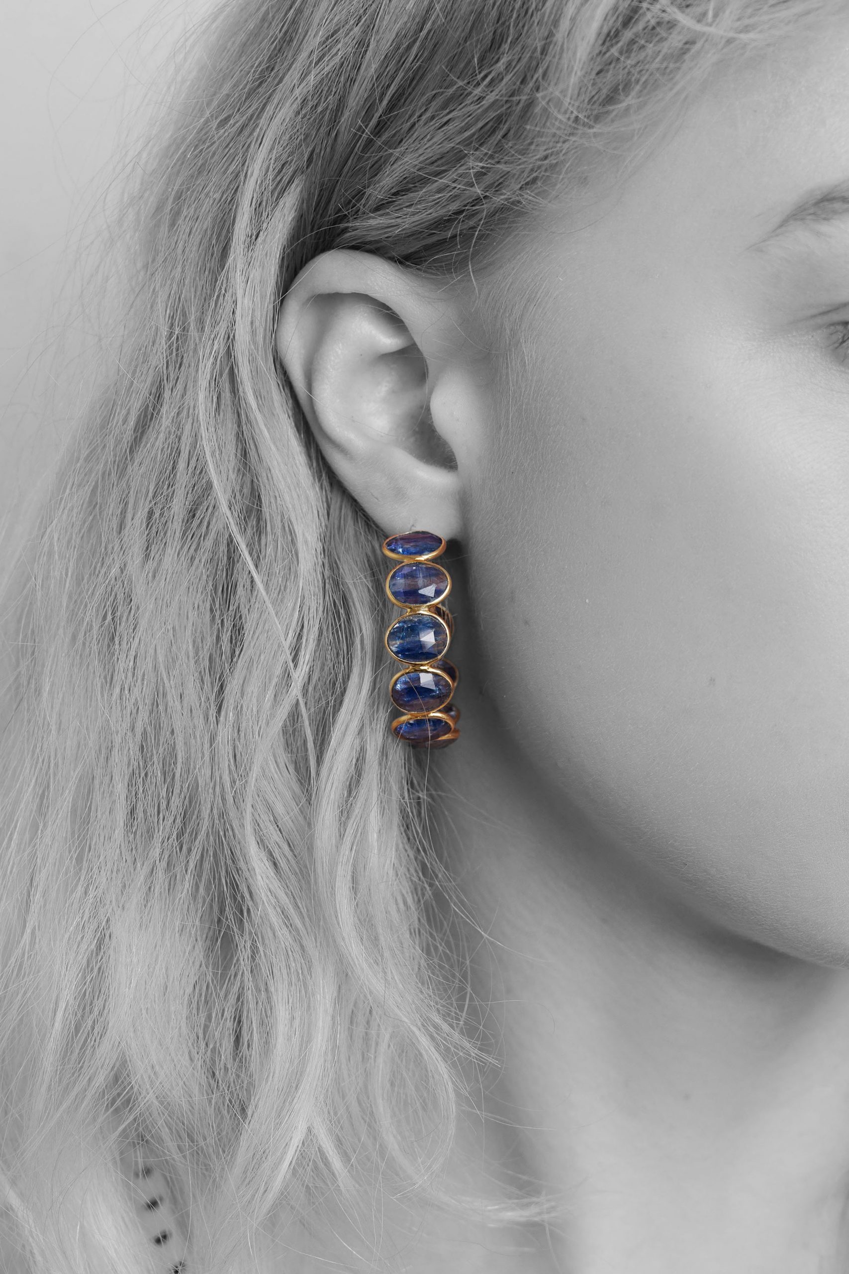 AROS FACETADOS INFINITO: 9 cianitas talladas y facetadas a mano, montadas a mano una a una para crear un aro en latón recubierto de oro de 18k.