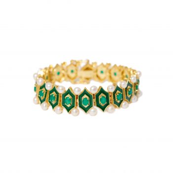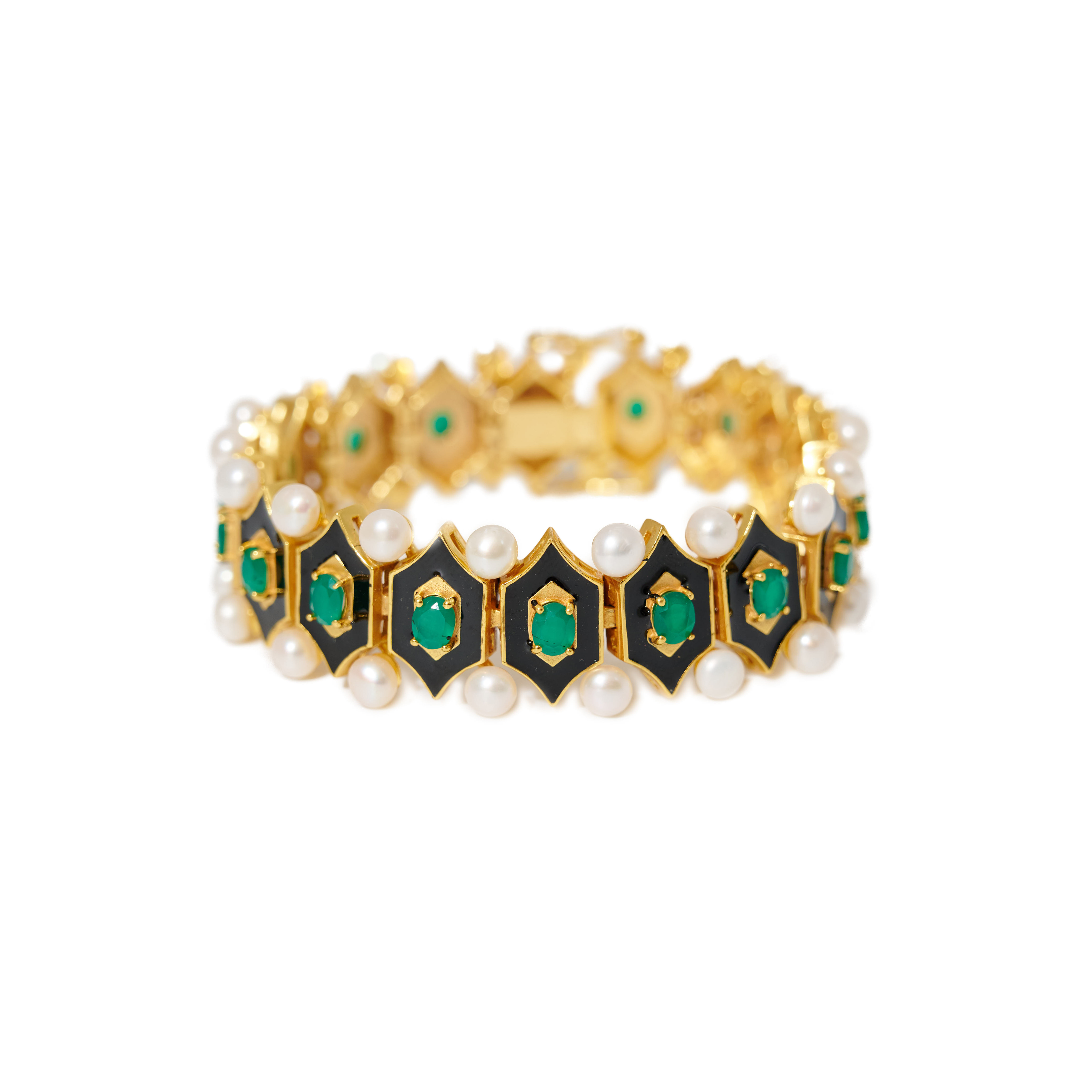 Green Onyx, Pearls and Green Enamel Venetian Bracelet